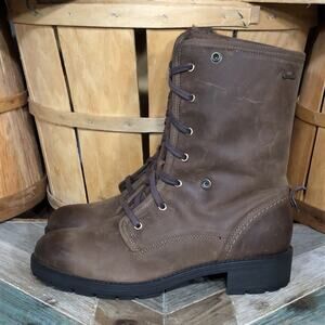 Previously loved in great condition, very light wear on the upper and soles with lots of life left. Brown Leather upper, goretex waterproof, women’s size 10