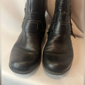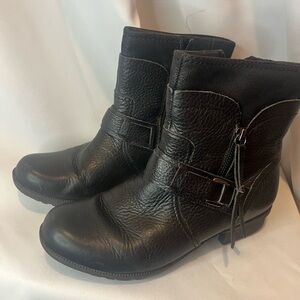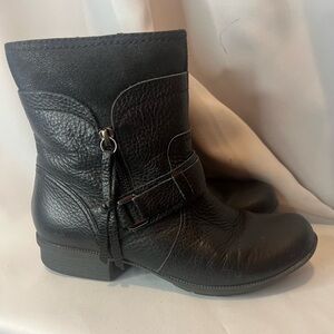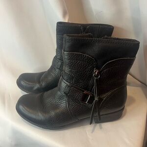 Clarks Riddle Avant Black Ankle Boots with Zipper and Strap Detail