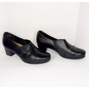Classic office casual everyday shootie bootie pump. Slip on comfortable. Clarks unstructured