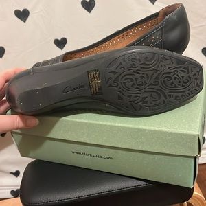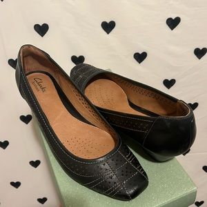 Clarks Artisan Ryla Castle Black Leather Heels in black