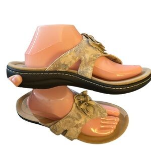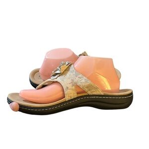 Clark’s Sand Beige Muted Floral Laurieann Gemma Thong Sandal Adjustable