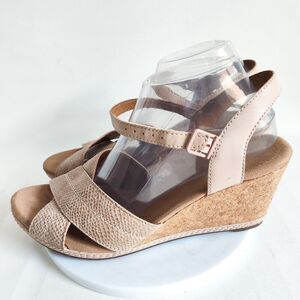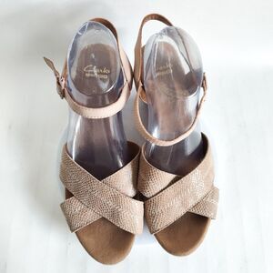 Clarks Sandals 10 Wide Helio Latitude Leather Embossed Snakeskin Wedge Strappy