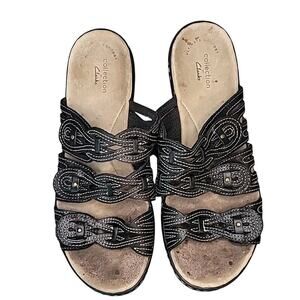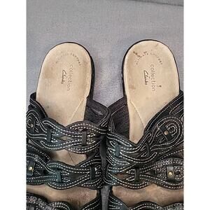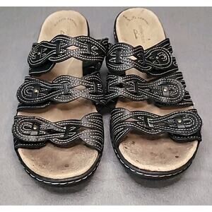 Clarks Sandals Black Leather Triple Strap Women’s 9 Luxe Comfort Coastal Resort