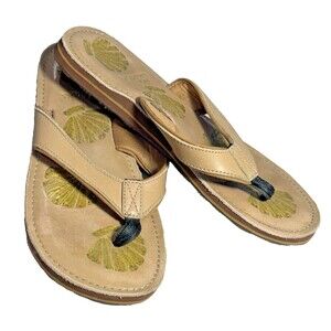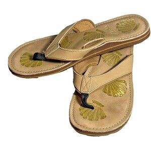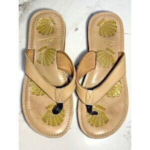 Clarks Sandals Starfish Women's Leather Flip Flops Sz 10 M Tan