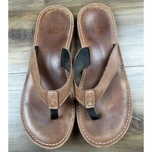 Clarks Sandals Womens 11M Roxanna Flip Flop Thong Brown Leather Toe Post Comfort