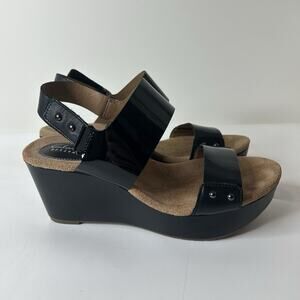 Clarks Sandals Women’s 8 M Artisan Caslynn Dez Black Patent Leather Wedge