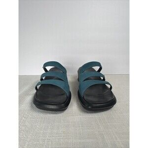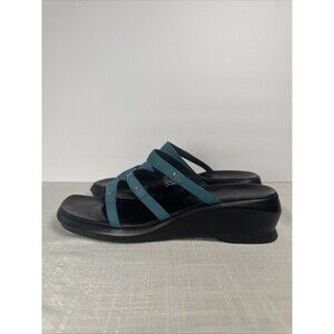 Clarks Sandals Womens 9 M Triple Strap Slide Wedge Comfort 32454 Teal Blue Leather