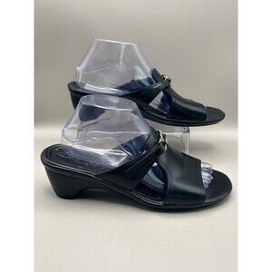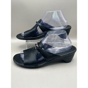 Clarks Sandals Womens Casual Comfort Slip On Low Heels Slide Black Leather 9M