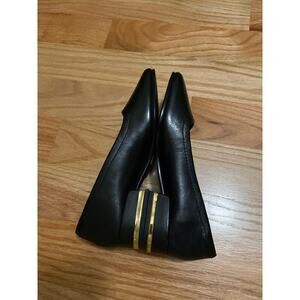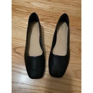 Clarks Seren 30 Court shoe Womens 7.5 Ballet flats Gold Heel Preppy Office black
