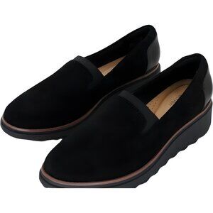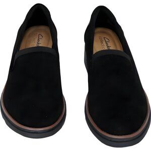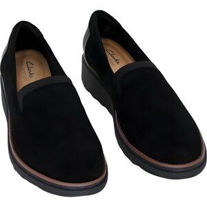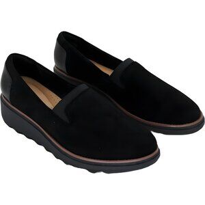 Clarks Sharon Dolly Black Slip-On Loafers Lightweight Wedge Women's US 8.5M