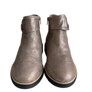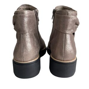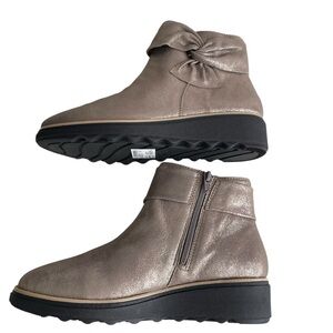 Clarks Sharon Salon Pewter Metallic Ankle Bbots Women’s Size 8W Bow Casual