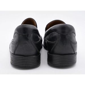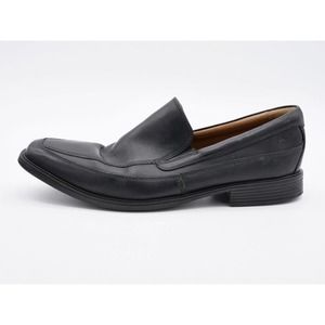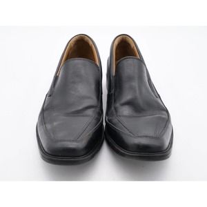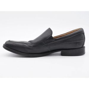 Clarks Shoes Mens 10.5 Black Leather Loafers Apron Toe Slip On Comfort Cushioned
