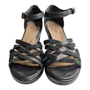 Clarks Shoes Un Plaza Vibe Combi Strappy Wedge Comfort Sandal Black 8