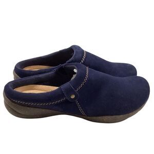 Clarks Shoes Women 8.5 Blue Roseville Echo Suede Slip On Mule Clogs Comfort