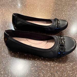 Clarks Shoes Womens 7.5 M Kinzie Light Ballet Flats Black Leather Comfort