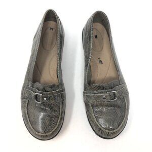 Clarks Shoes Womens 8W Cheyn Marie Gray Snake Print Loafers Slip On Comfort Fit