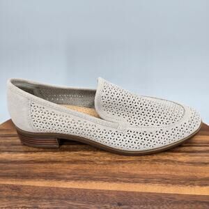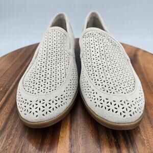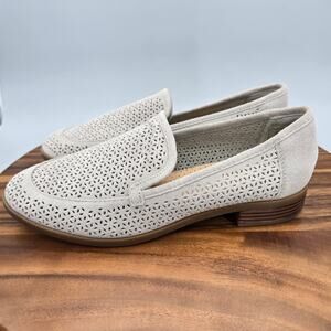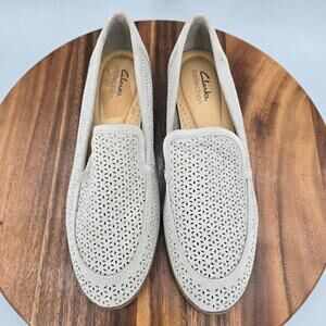 Clarks Shoes Womens 9 M Gray Suede Leather Perforated Slip On Comfort Loafers
