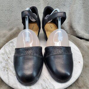 Clarks Shoes Womens Size 10 Black Leather Emily 2 Ketra Academia Block Heels
