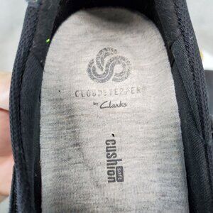 Stylish and comfortable Clarks Cloudstepper loafers in faux leather. Ideal for all-day wear, featuring a sleek black design. Perfect for casual and semi-formal occasions.