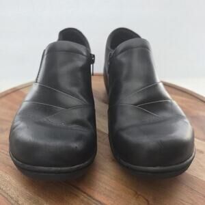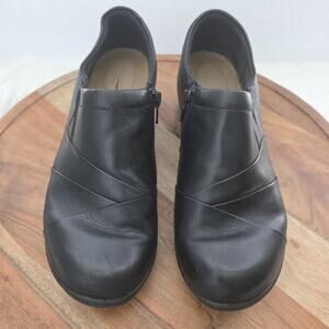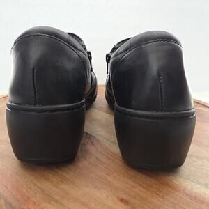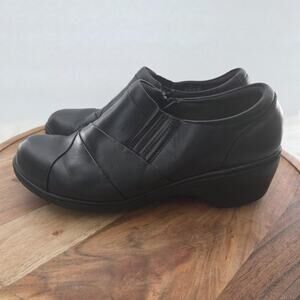 Clarks Shoes Womens Size 8.5 Wide Black Leather Comfort Cushion Slip On Zip Heel