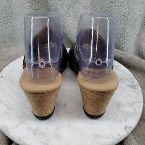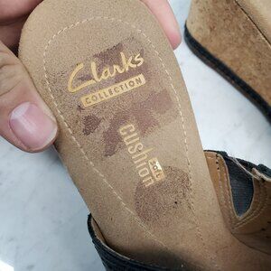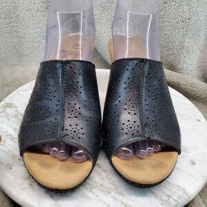 Clarks Shoes Womens Size 9 Black Leather Helio Corridor Wedge Sandals