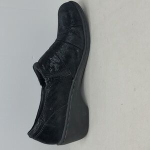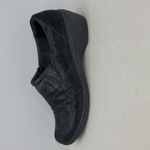 Clarks Shooties Block Heel Sparkle Black Dotted Ruched Side Zip Womens 9.5
