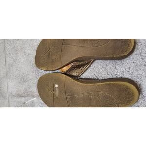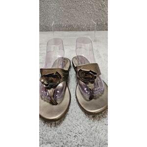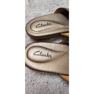 Clarks Silver Gray Leather Flower Slide Flip Flops Slide Sandals Size 8.5