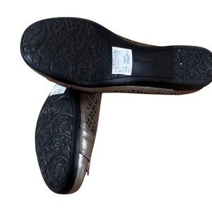 Clarks Size 10 Bronze Perforated Leather Flats Comfortable Bow Detail Shoes