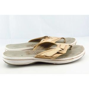 Clarks Size 8 M Gold Flip Flop Synthetic Women Sandal Shoes