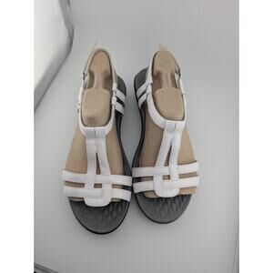 Clarks Size 8 White Leather Sandals Women's Strappy Slingback With Box