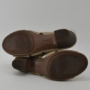 Clarks Women's Tan Beige Leather Slip On Sandals Block Heel