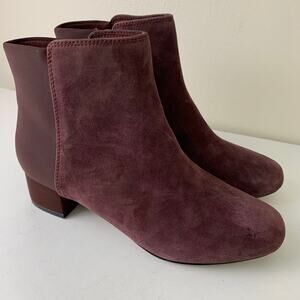 Clarks Size 9M Chartli Valley Burgundy Plum Suede Ankle Boots Booties