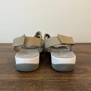Clarks Size 9W Comfort Wedge Sandals Beige Elastic Slingback Walking Shoes