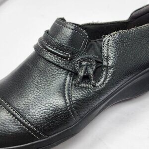 Clarks Size US 9.5 UK 7 Womens Black Cheyn Leather Slip On Loafers Comfort NEW