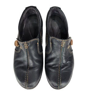 Clarks Slip On Loafers Shoes sz 8 M Women Ashland Glow Leather Black Un Loop