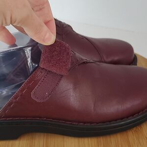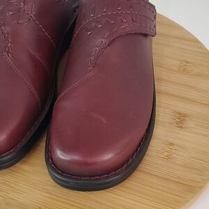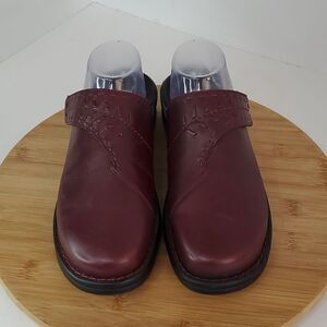Clarks Slip On Burgundy Leather Wedge Mules Women's Size 9M