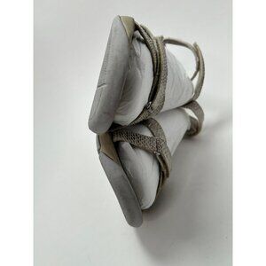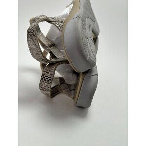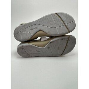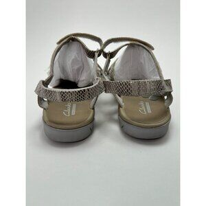 Keywords: Clarks sandals, snake print sandals, adjustable strap sandals, comfort sandals, walking shoes, women's sandals, size 8, gray sandals, beige sandals, casual sandals, summer shoes, orthopedic sandals