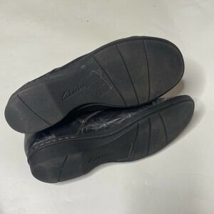 Clarks Womens Sz 6.5 Soft Cushion 16724 Black Leather Zip Ankle Lace Up Boots.