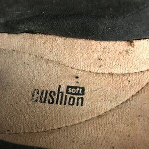 Classic Clarks Cushion Soft slip on flats with all day comfort. Smooth black leather upper, low wedge heel and cushioned foam insole make them great for work, travel or everyday wear. Rounded square toe with subtle perforation detail keeps the look simple enough for office outfits or casual jeans.