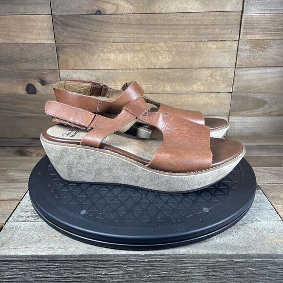 Clarks Soft Cushion Women Size 7.5 M Hazelle Amore T-Strap Brown Leather Sandal