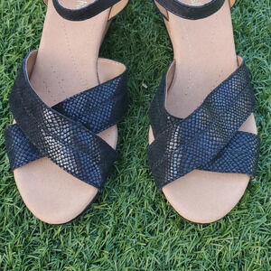 Clarks Soft Cushion Womens Helio Latitude Wedge Sandals with a Leather Upper