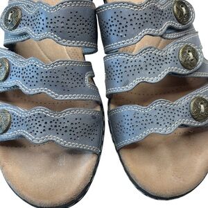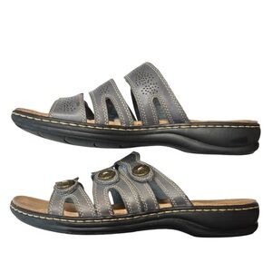 Clarks Soft Cushioned Leisa Taupe Leather Strap SlipOn Sandals Sz 9.5 Adjustable