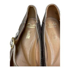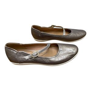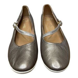 Clarks Soft Cushion Maryjane Leather Flats in Metallic Gray Size 9.5