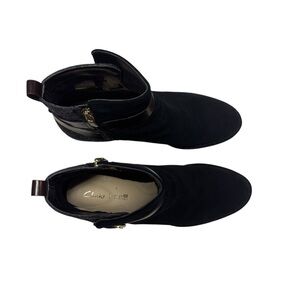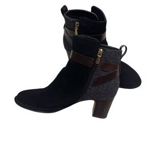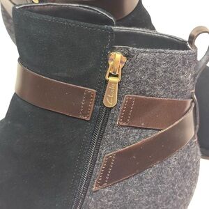 Clarks Spiced River Ankle Boots Booties black Suede gray wool tweed size 10