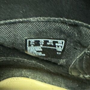 Stylish black ankle boots featuring a brown strap and gold buckle detail. Perfect for any occasion.