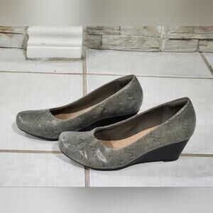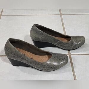 Clarks Stone Snakeskin print Flores Tulip Leather Wedge Women's size 7