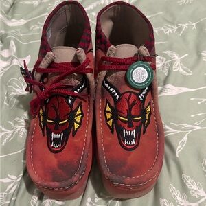 Clark’s wallabee stranger things versions. Upside down. Hellfire club. Dead stock new with tags and box