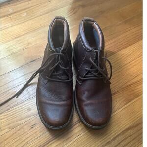 Classic Clarks Stratton chukka boots in rich brown leather, size 10M. Timeless design with durable construction and comfortable fit—perfect for everyday wear, office styling, or smart-casual outfits. Known for quality and longevity, these boots are a versatile staple that pairs effortlessly with jeans or chinos.