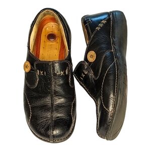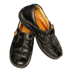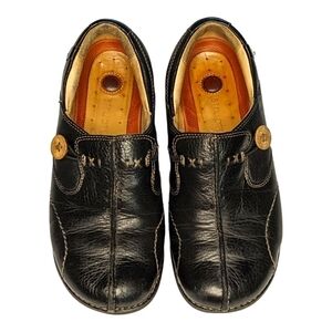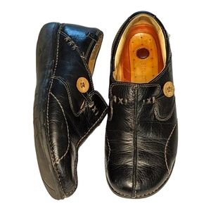 Clarks Structured Soft Black Leather Side Button Women's Shoes Size 6M