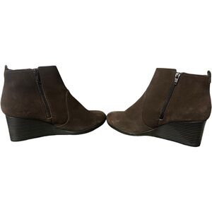 Clarks Suede Leather Wedge Ankle Booties Brown Size 7.5W
